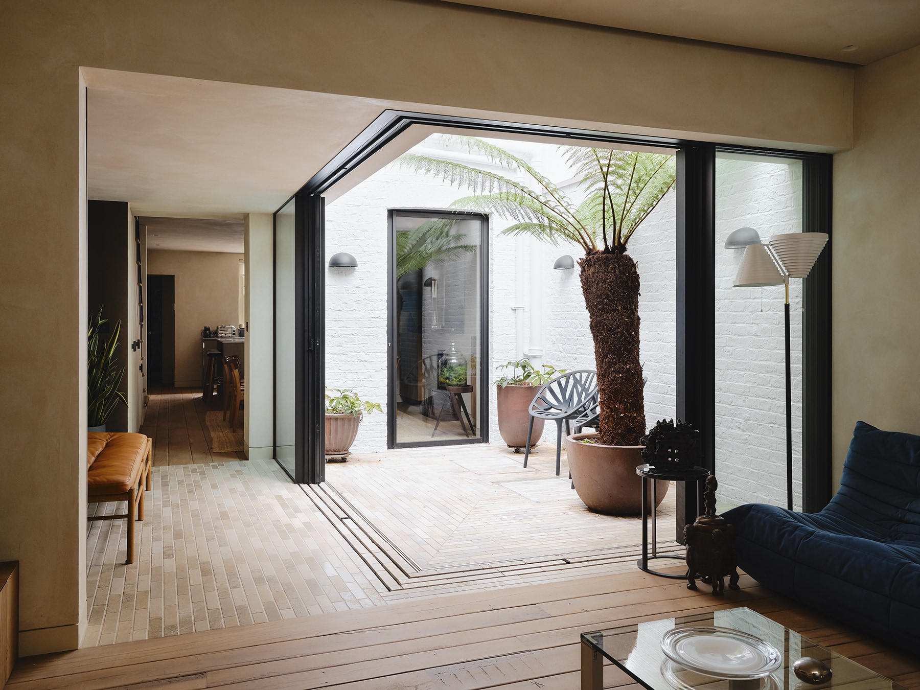 The basement was altered considerably to introduce a central courtyard, fully opening the living space up.